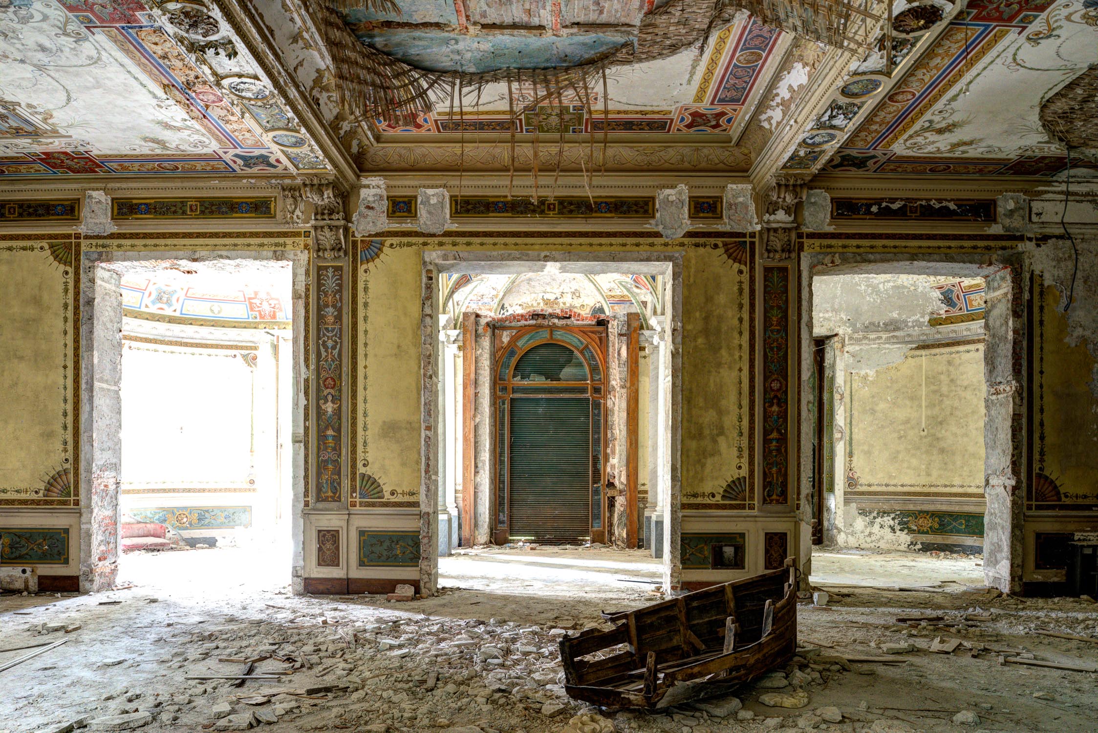 Villa abbandonata con barca